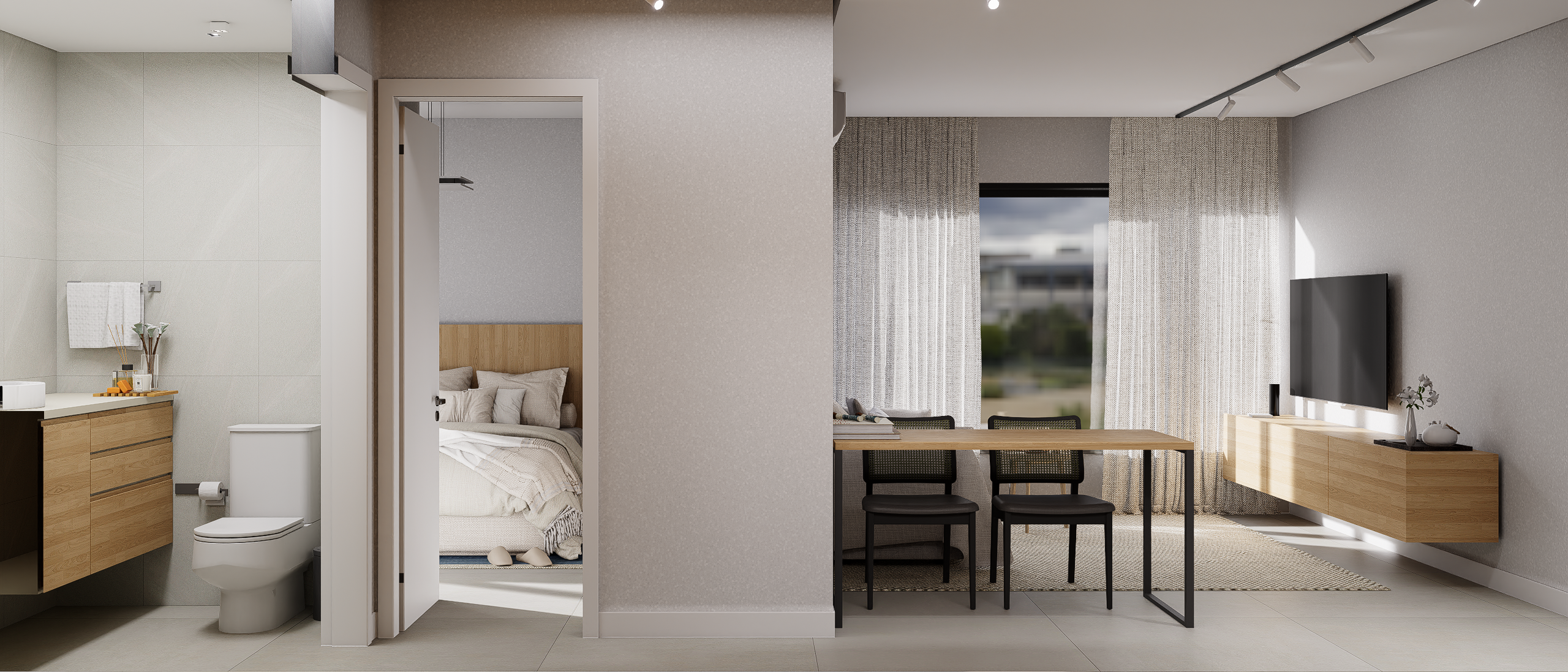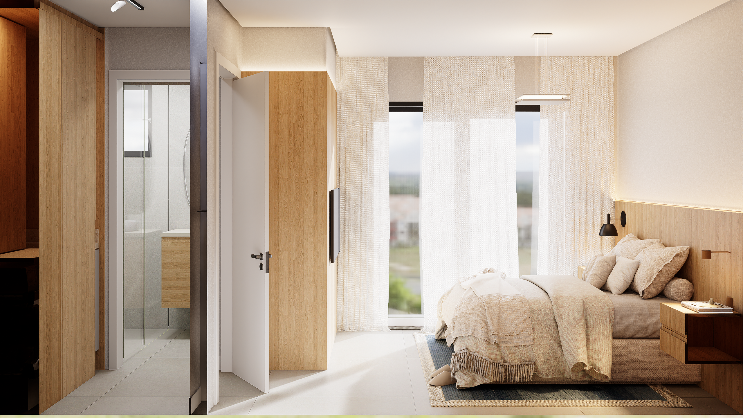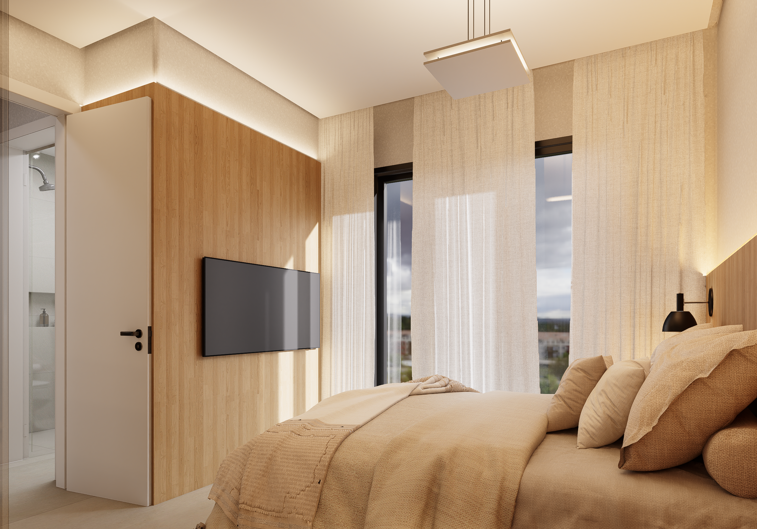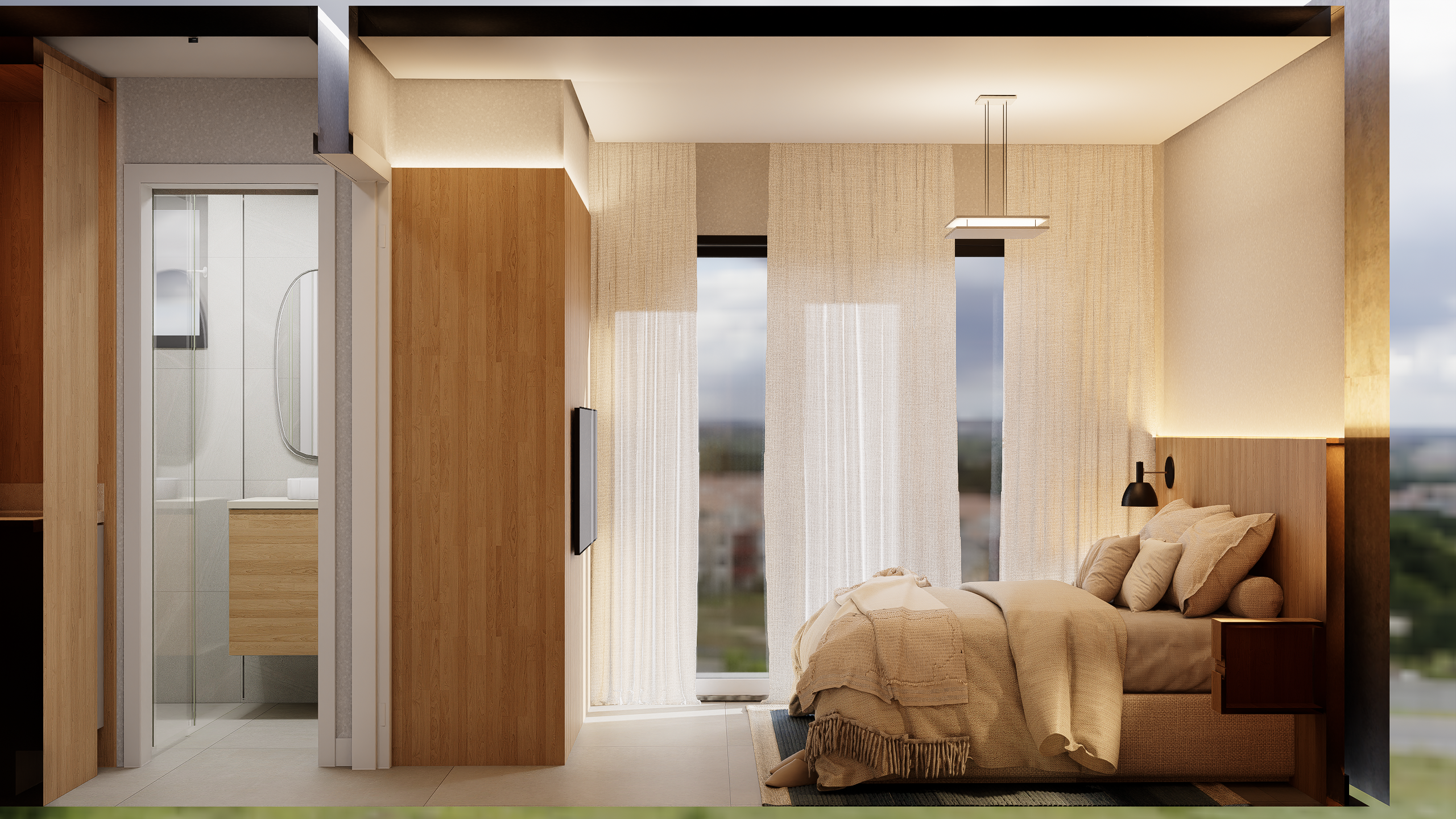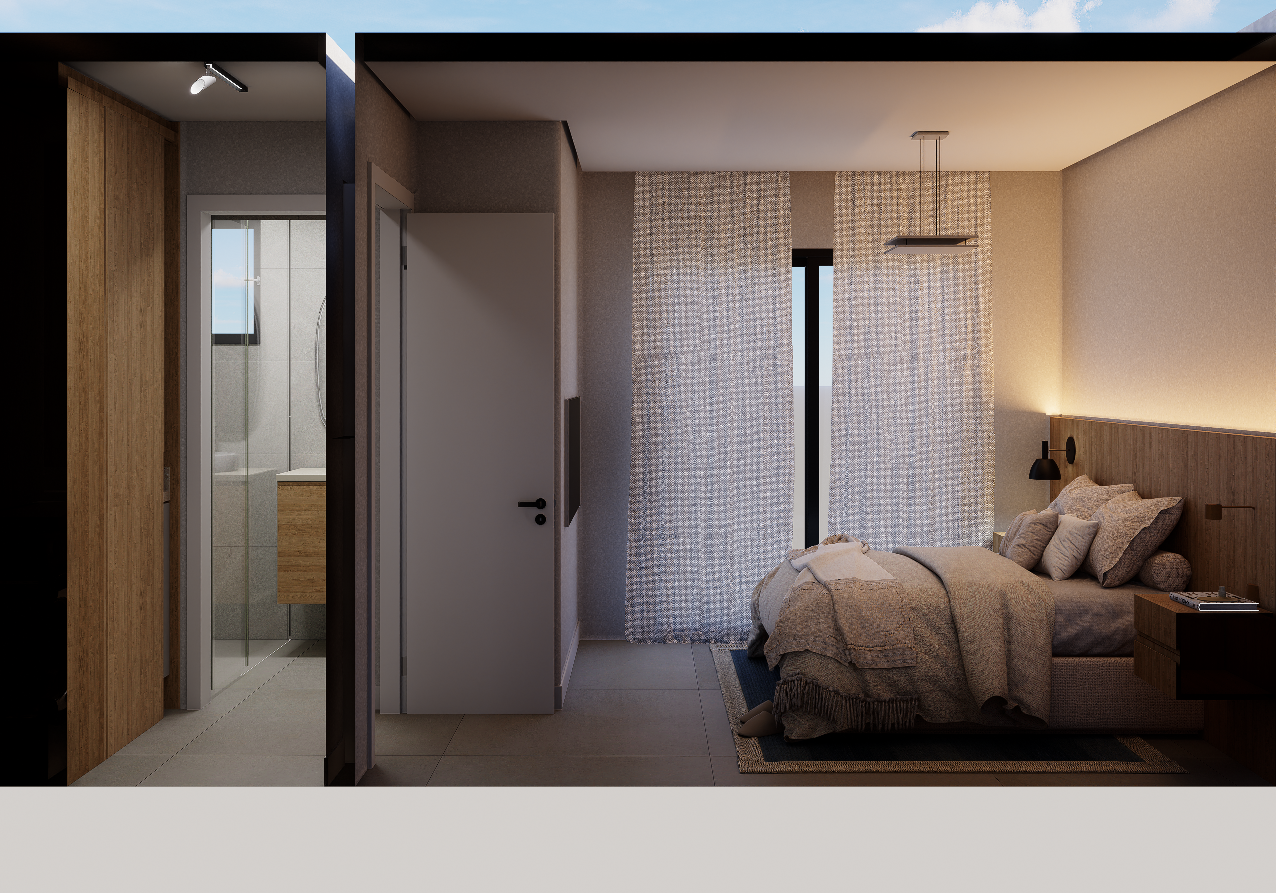 As suites com final 05 combinam eficiência e conforto em seus 35,62 m². A planta de 1 dormitório foi desenhada para proporcionar fluidez, boa iluminação e conforto acústico, atendendo perfeitamente quem busca um apartamento moderno, funcional e alinhado ao estilo de vida urbano contemporâneo.