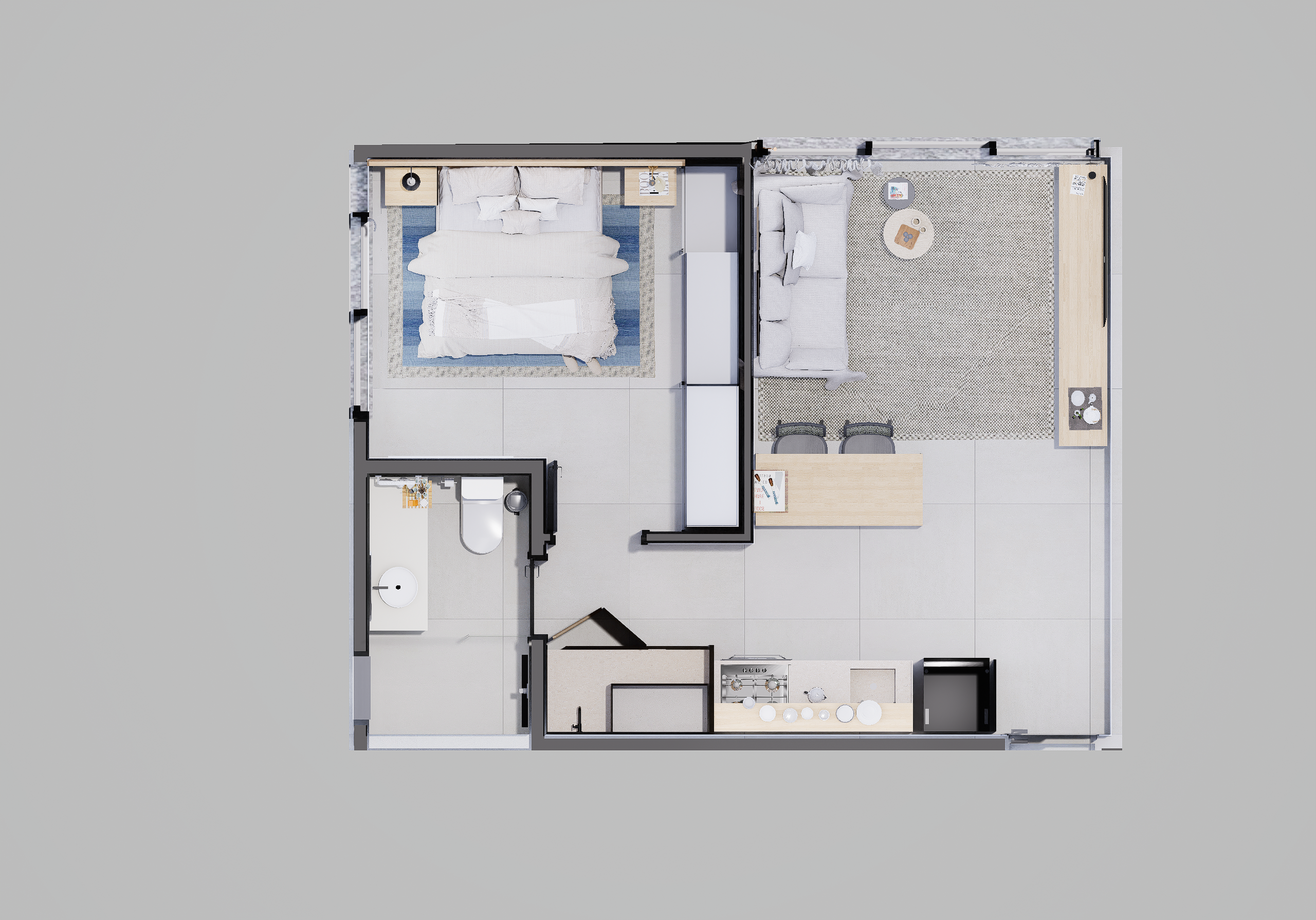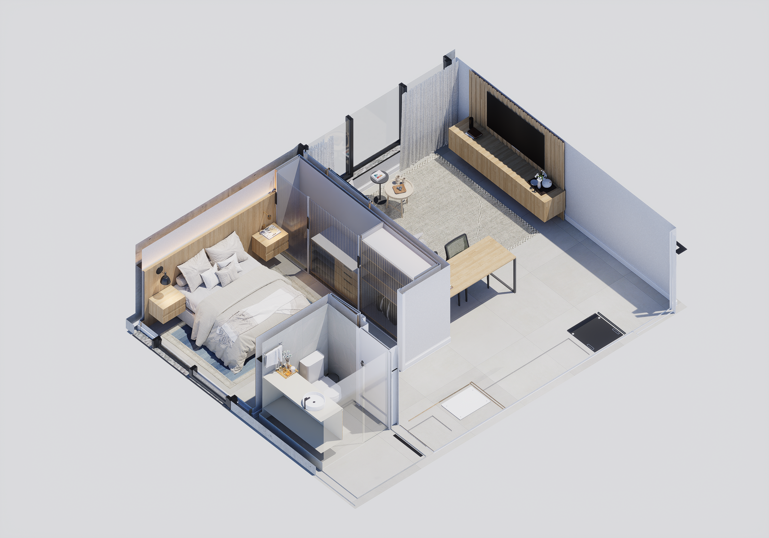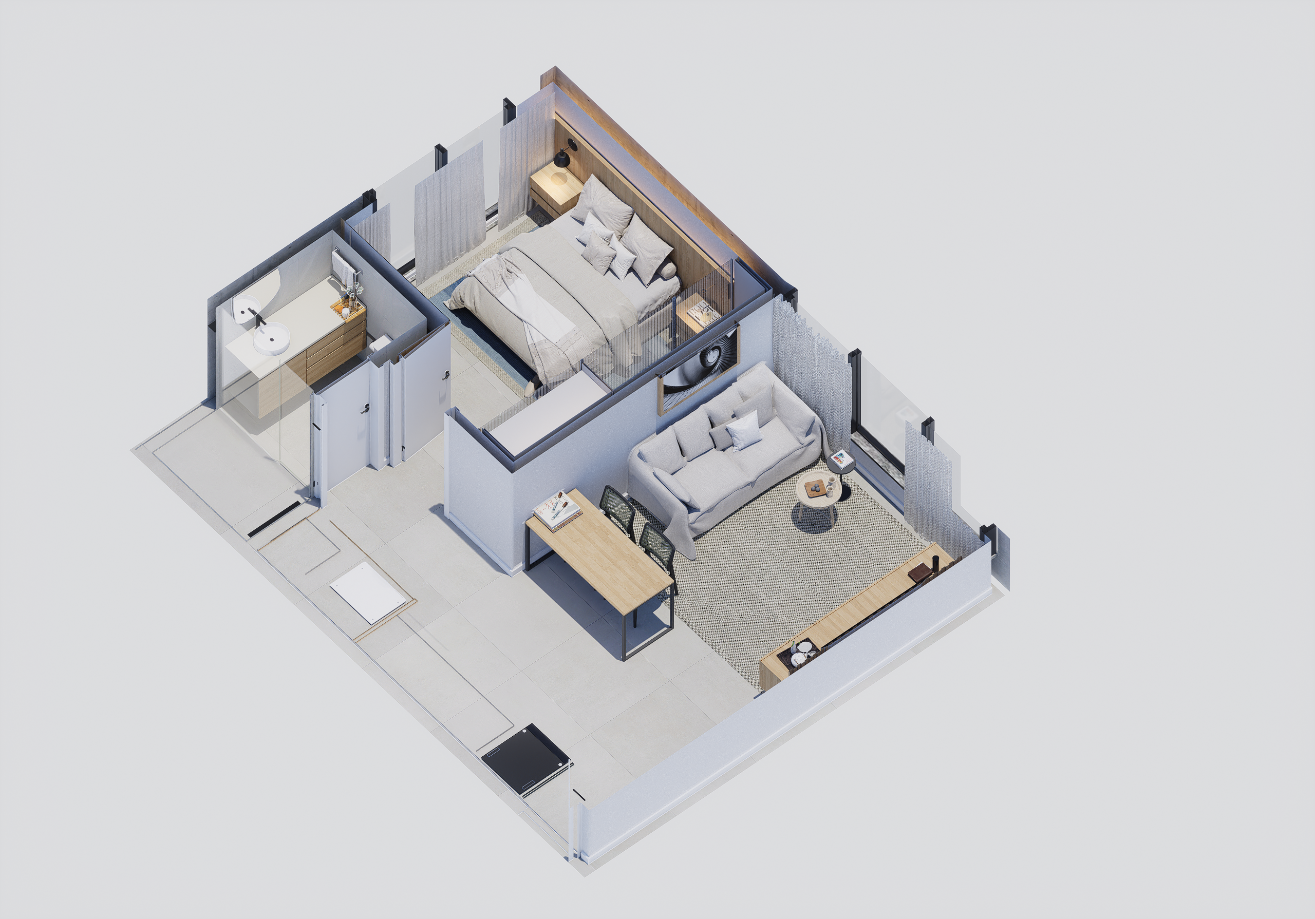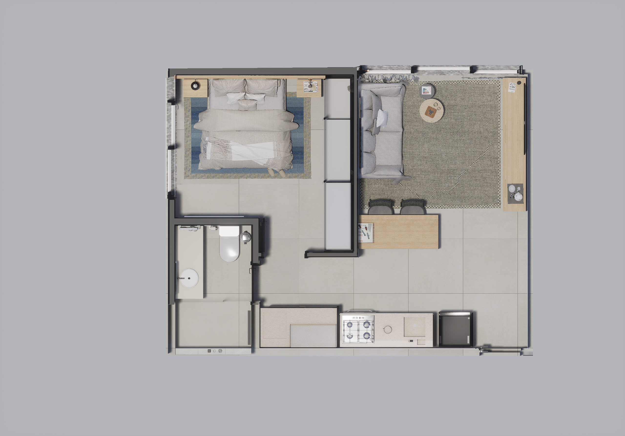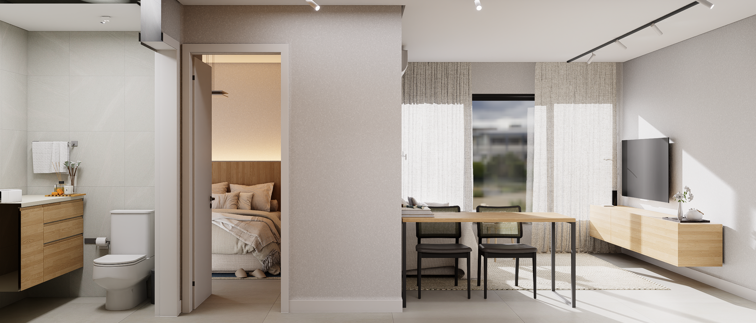 As suites com final 05 combinam eficiência e conforto em seus 35,62 m². A planta de 1 dormitório foi desenhada para proporcionar fluidez, boa iluminação e conforto acústico, atendendo perfeitamente quem busca um apartamento moderno, funcional e alinhado ao estilo de vida urbano contemporâneo.
