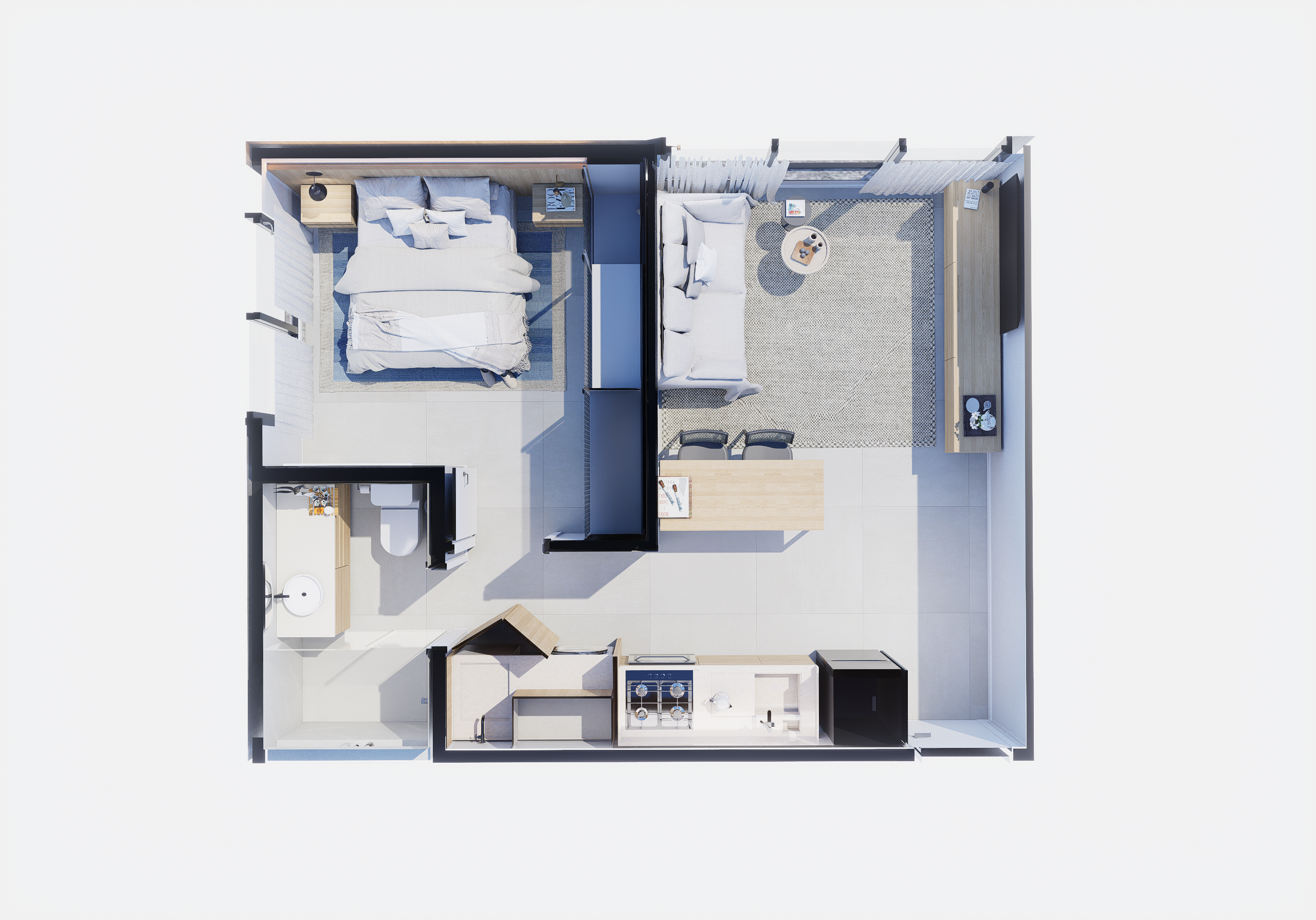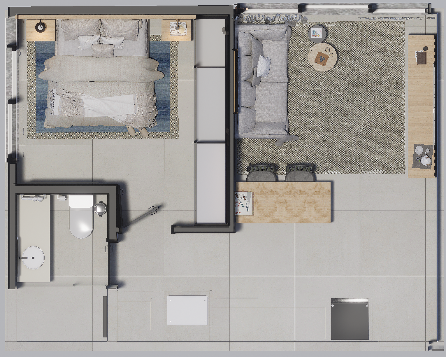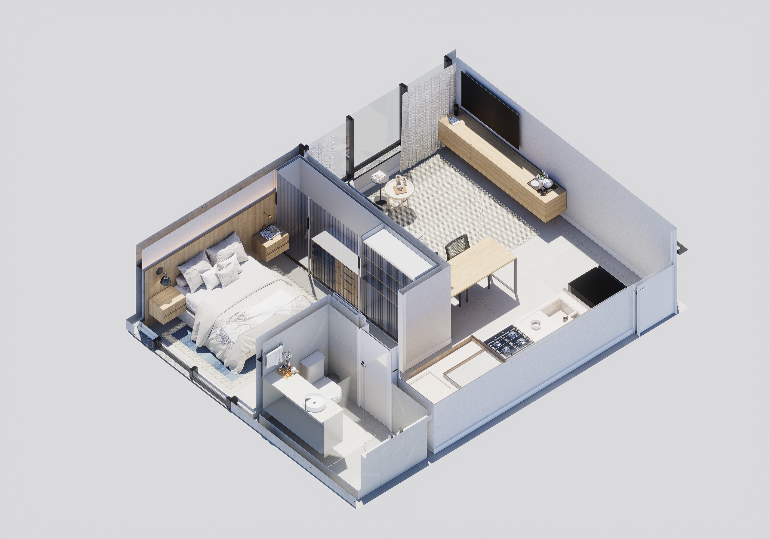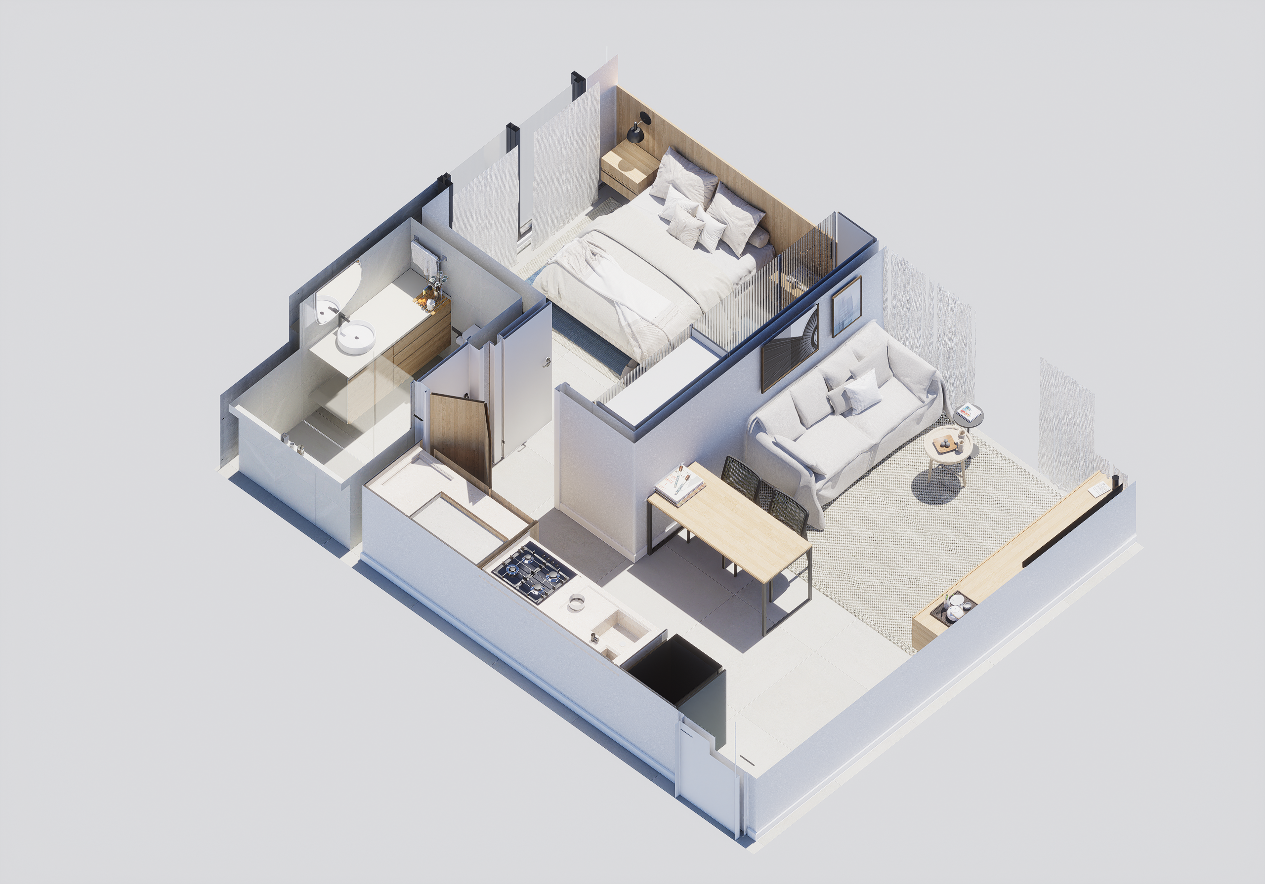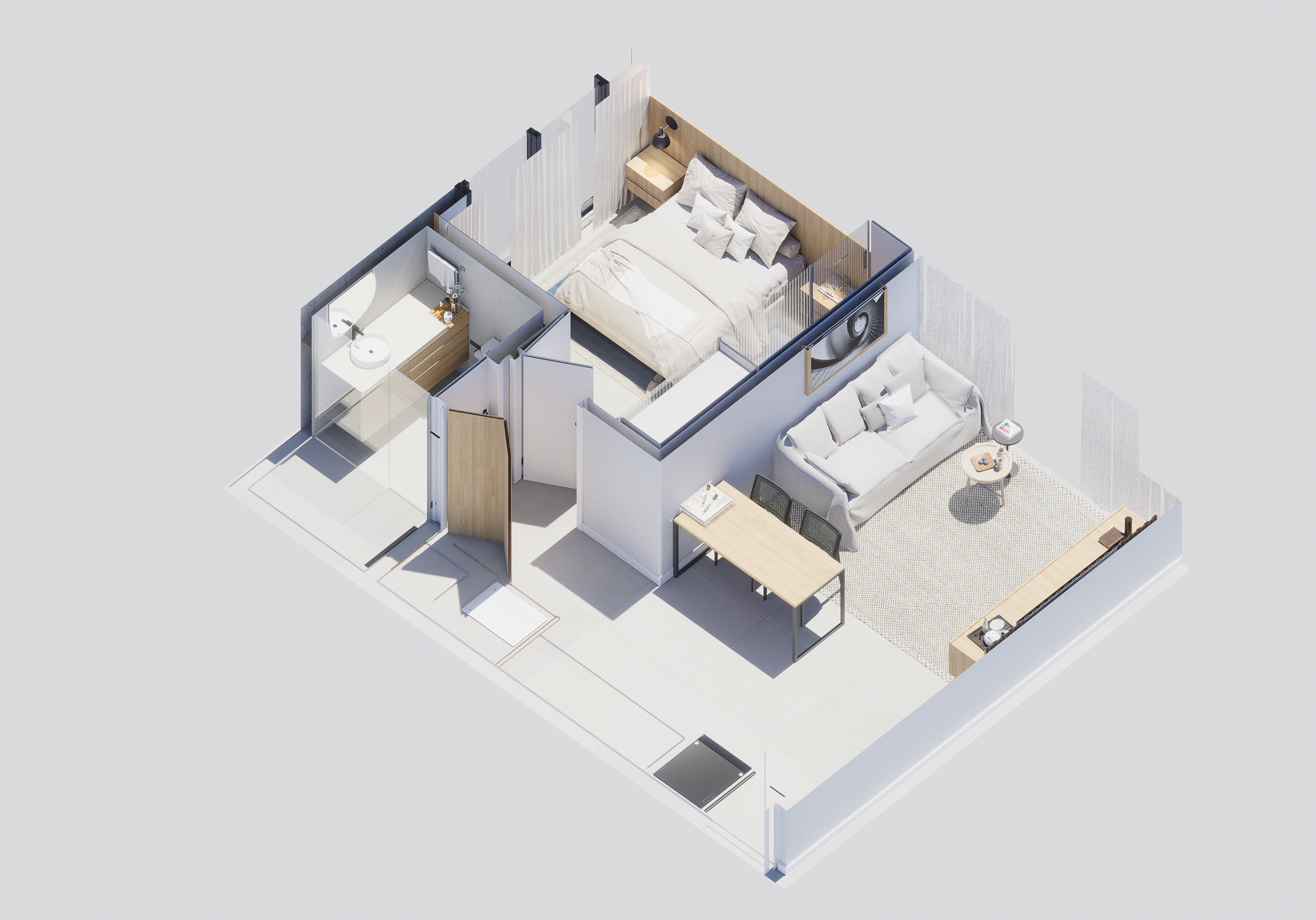 As suites com final 05 combinam eficiência e conforto em seus 35,62 m². A planta de 1 dormitório foi desenhada para proporcionar fluidez, boa iluminação e conforto acústico, atendendo perfeitamente quem busca um apartamento moderno, funcional e alinhado ao estilo de vida urbano contemporâneo.